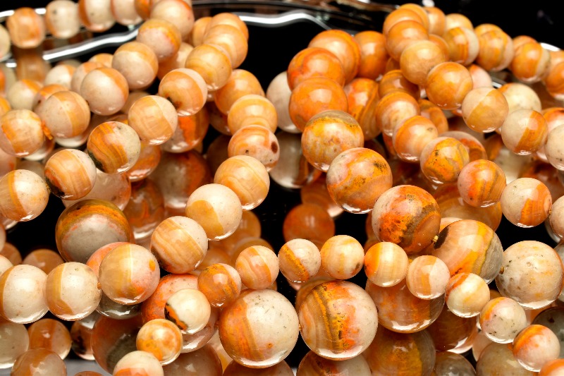 うっすら縞模様やマーブル模様が見え、一粒一粒個性的です。