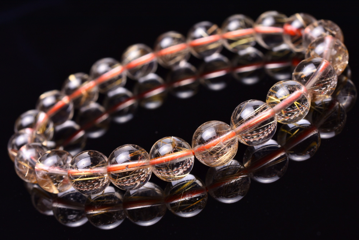 金運アップ! ゴールドルチルクォーツ 8mm ブレスレット 1個売り _B1378-8