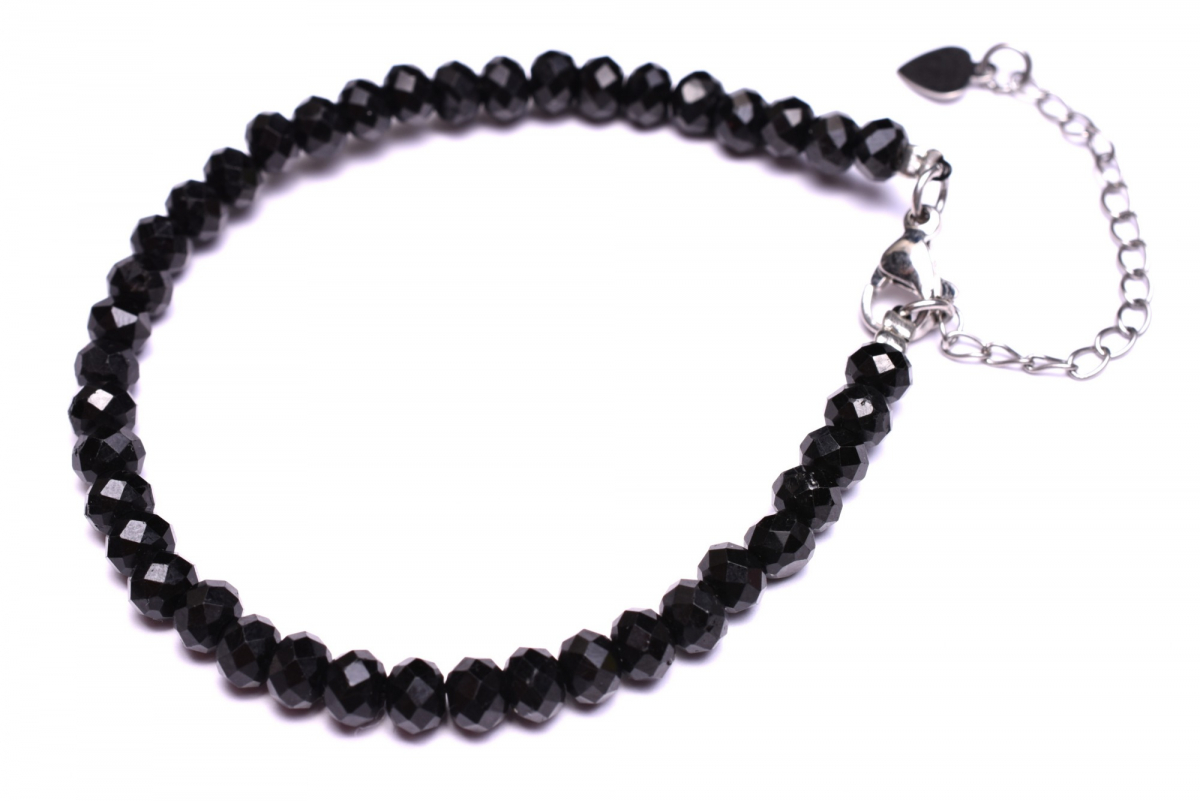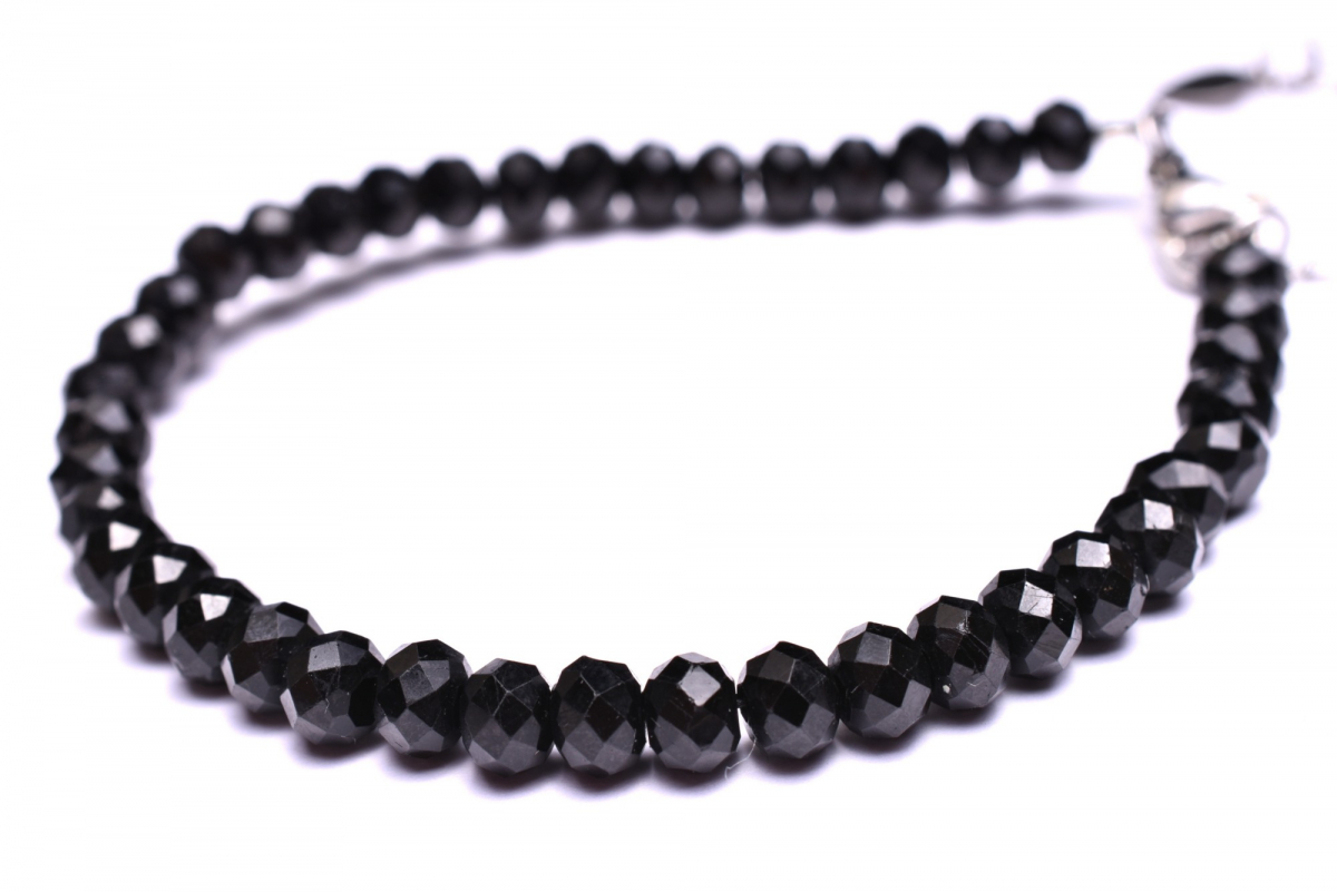 ミャンマー産 ブラックスピネル 3.5x4.5mm ボタンカット アジャスター付き(長さ調整可) ブレスレット 1個売り _B1383