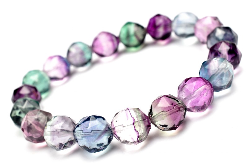 【1点物】マルチカラー フローライト 9.5mm トライアングルカット ブレスレット _M6830
