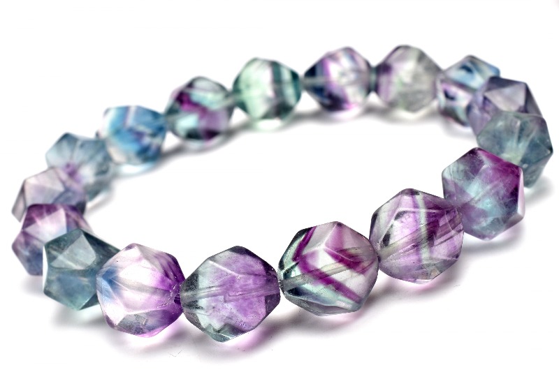 【1点物】人気 ブルーグリーンフローライト 11.5mm シンプルスターカット ブレスレット _M6838
