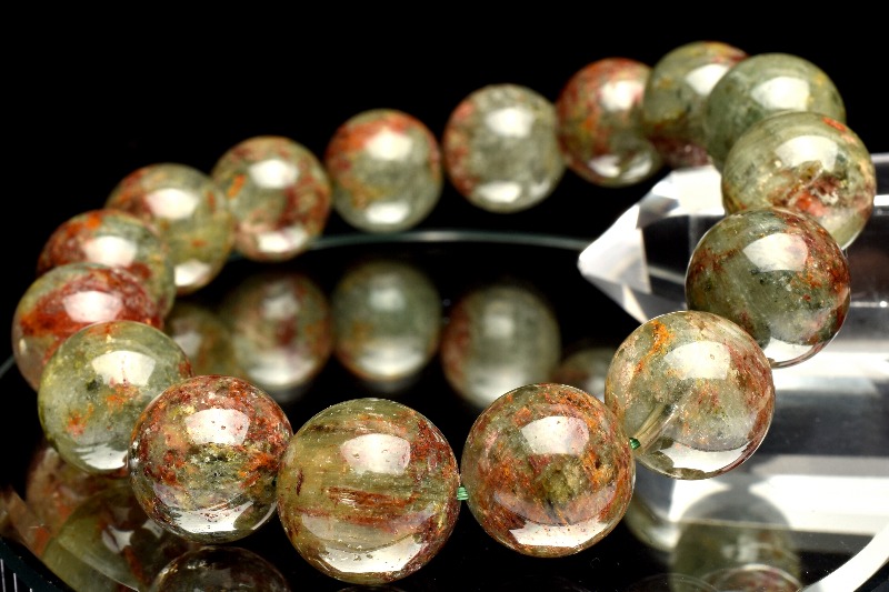【1点物】庭園水晶 レッドグリーンガーデンクォーツ 13.5mm ブレスレット _M6898