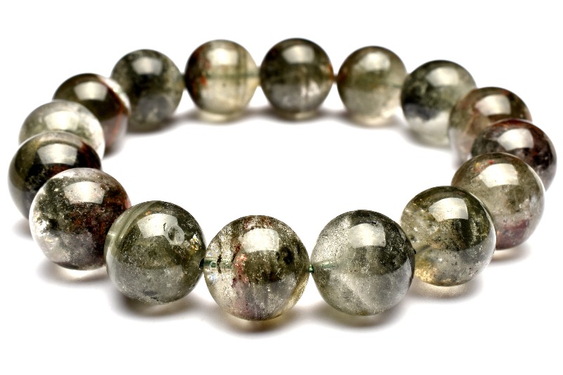 【1点物】庭園水晶 レッドグリーンガーデンクォーツ 14-15mm ブレスレット _M6899