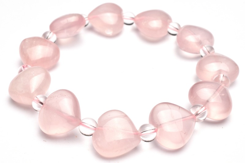 【1点物】マダガスカル産 ローズクォーツ 14x15(丸玉5.5)mm ハート ブレスレット _M6911