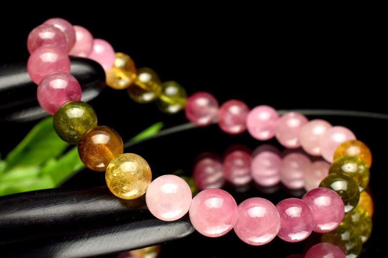【1点物】華やか◇透過性あり トルマリン 7mm グラデーション ブレスレット _M7138