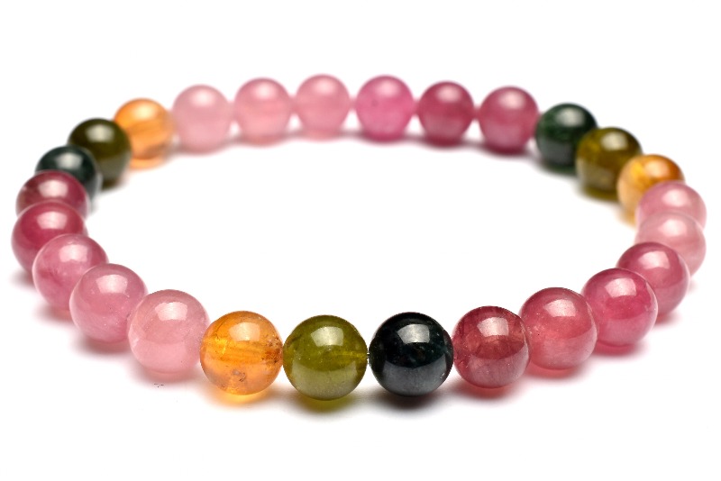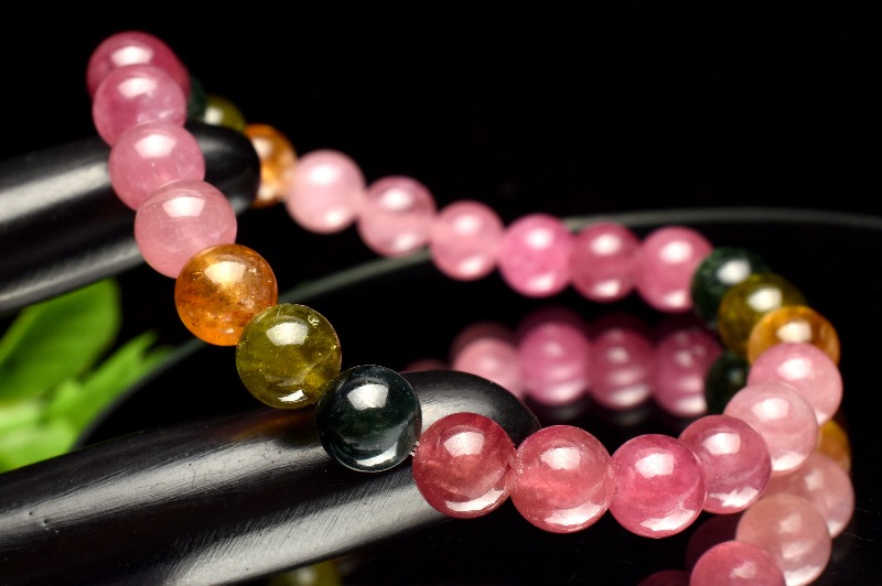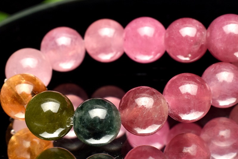 【1点物】華やか◇透過性あり トルマリン 7mm グラデーション ブレスレット _M7140