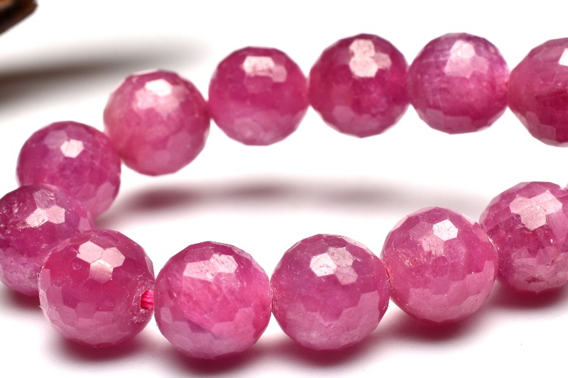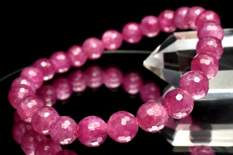 【1点物】高発色◇ピンクパープル ルビー 7.5mm 128面カット ブレスレット _M7234