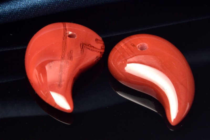 【1点物】高発色◇チベット産 アンデシン 23x14mm 2個セット 勾玉 ルース _PC1347