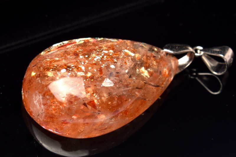 【1点物】Silver925◇AAAアルーシャ産 フェルドスパーサンストーン 29x19mm ドロップ ペンダントトップ _PC1443