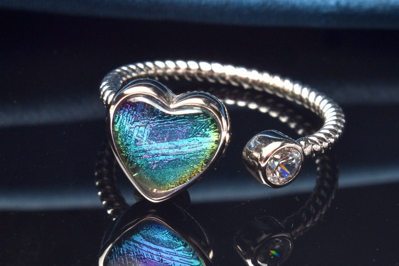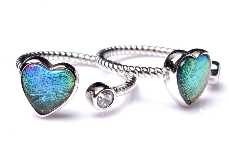 Silver925◇レインボーカラー ギベオン(メテオライト隕石) 8x8mm ハート 指輪リング(サイズ調整可) 1個売り _PRG2215