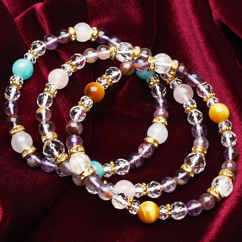 【2月デザイン】選べる3種☆ 誕生石 天然石 パワーストーン アメジスト アマゾナイト ローズクォーツ タイガーアイ 水晶 デザインブレスレット 当店オリジナル_MB2502