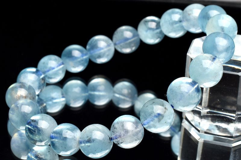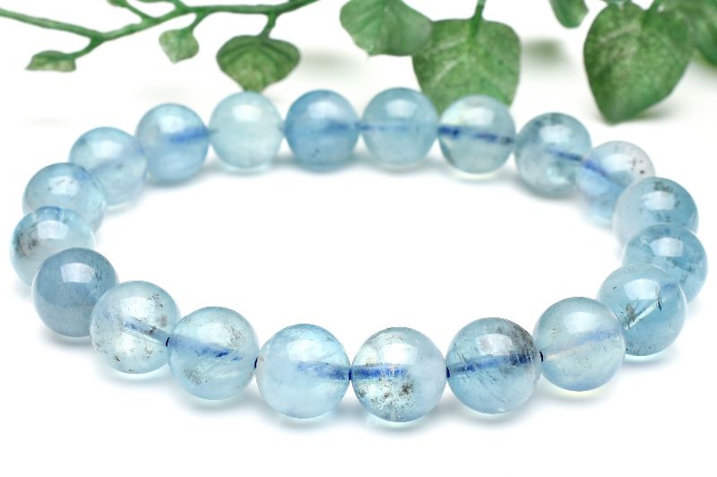 【1点物】南アフリカ産 アクアマリン 9.5mm ブレスレット _U4971