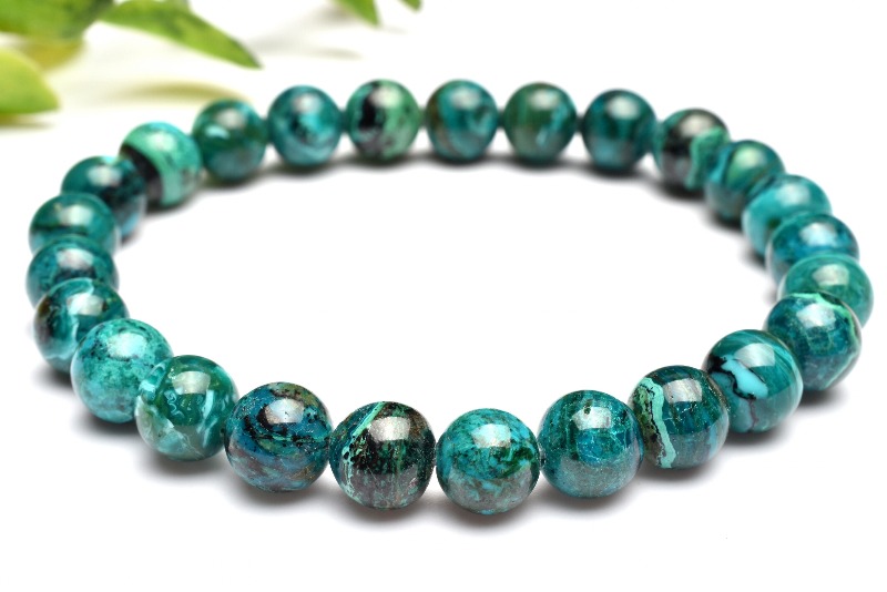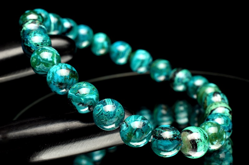 【1点物】地球模様 クリソコラ 7.5mm ブレスレット _M7330