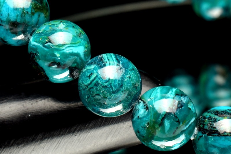 ブルーとグリーンのマーブル模様も随所に見られ、クリソコラならではのお色をご堪能いただけます。