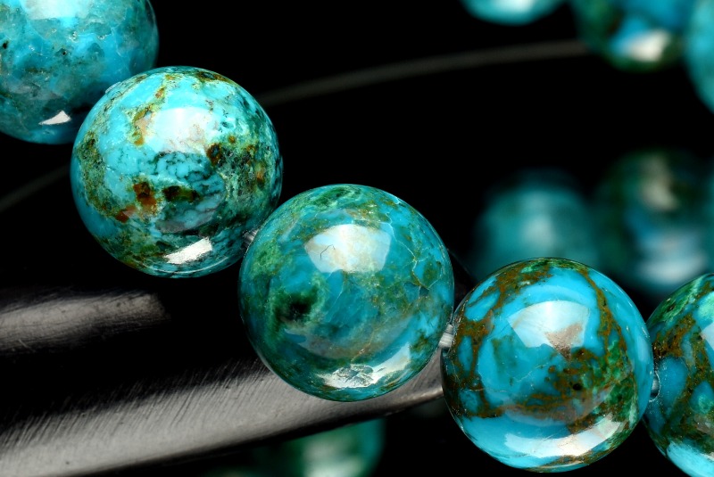 ブルーとグリーンのマーブル模様も随所に見られ、クリソコラならではのお色をご堪能いただけます。