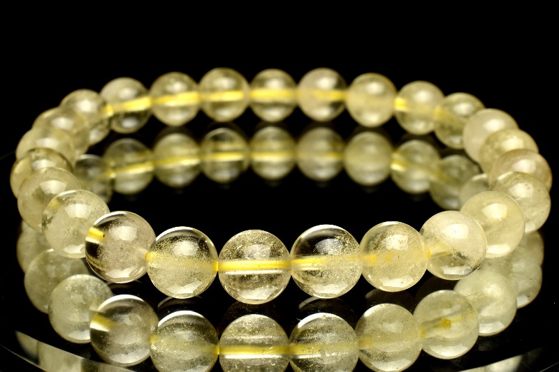 【1点物】透明感あり◇クリストバイライト内包 リビアングラス 7.5mm ブレスレット _M7663