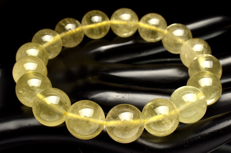 【1点物】透明感あり◇クリストバイライト内包 リビアングラス 12mm ブレスレット _M7674