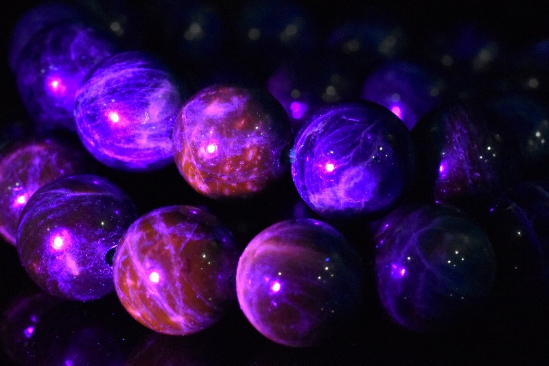 ハックマナイトは、ソーダライト(方ソーダ石)の変種で、紫外線で色が変わるファトクロミズムという不思議な特徴を持つパワーストーンです。