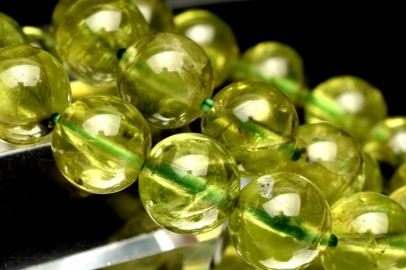 珠サイズが揃ったオリーブグリーンの美しさが魅力的。