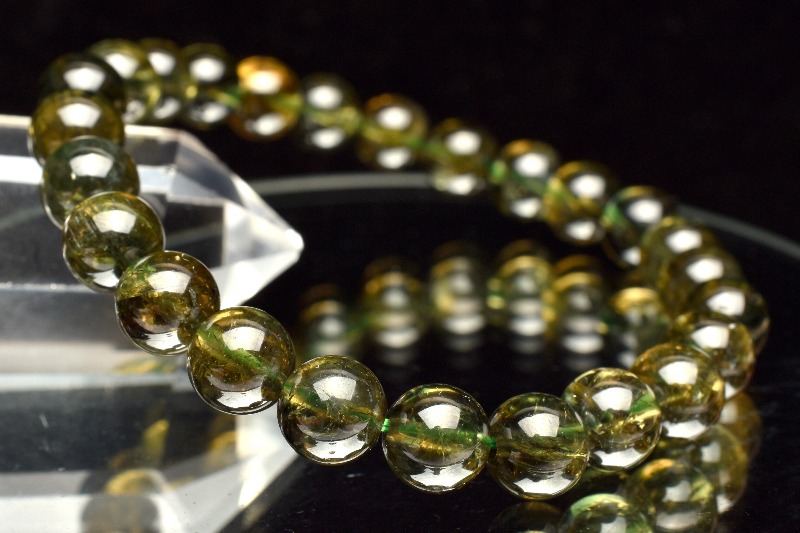 角度を変えると特有の多色性が見られ、グリーン〜イエローがかったグリーンへと変わる様はとても美しいです。