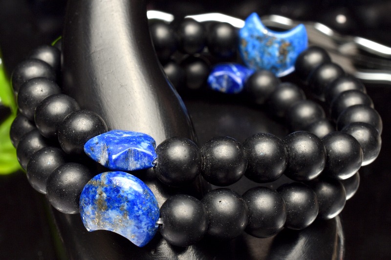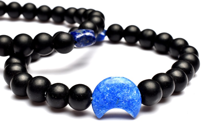 オニキス&ラピスラズリ 8.5x11.5-12x13.5-15.5mm 星月 ブレスレット 1個売り _BG5463-85