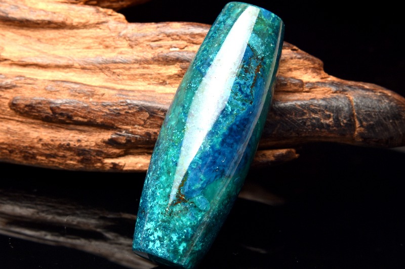 【1点物】高発色ブルー クリソコラ 42x15mm 天珠型(貫通穴) ビーズ _PC1544