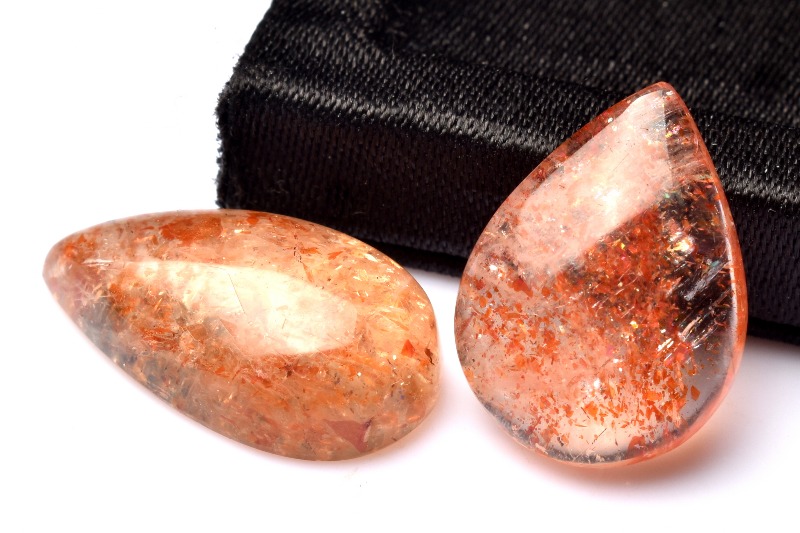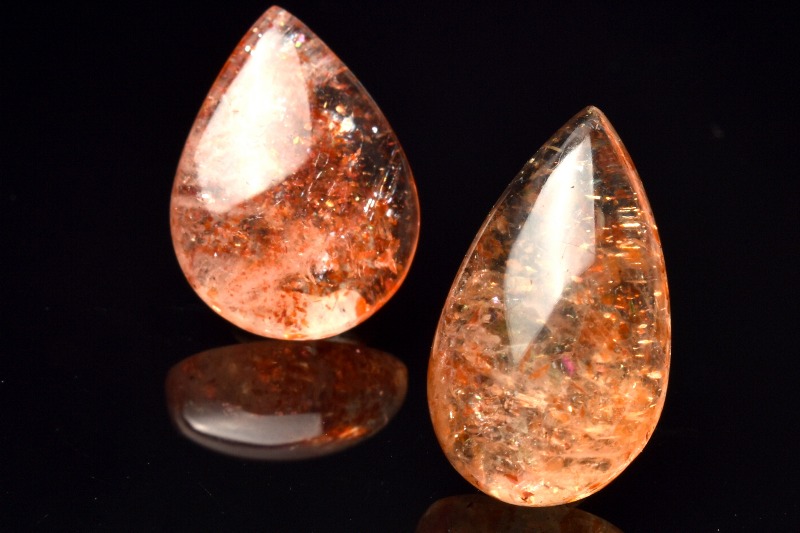 【1点物】AAA☆アルーシャ産 フェルドスパーサンストーン 18-20x12-13mm 2個セット ドロップ ルース _PC1563