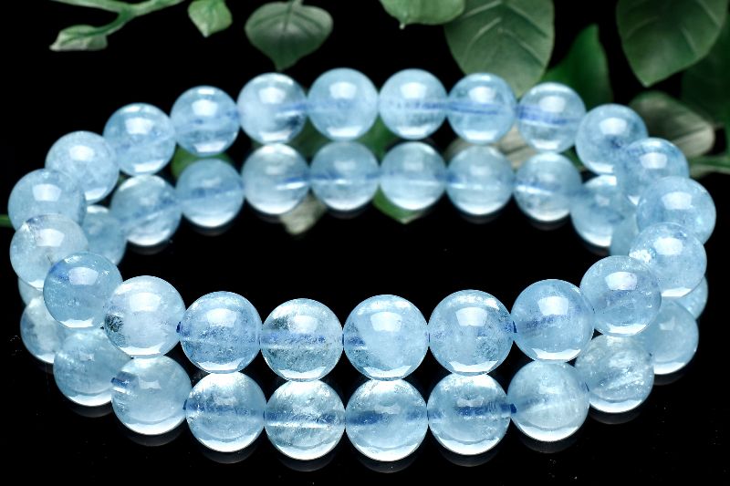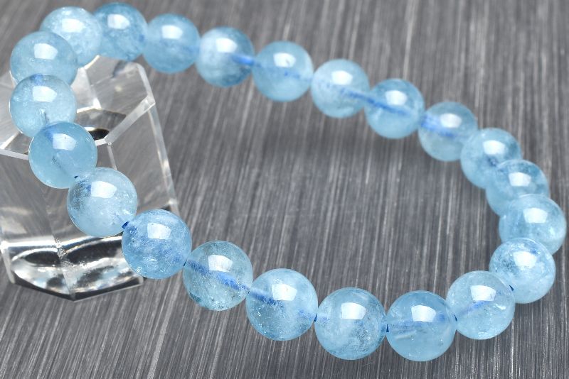 【1点物】ウイグル産◇きらきら アクアマリン 8.5mm ブレスレット _U5089