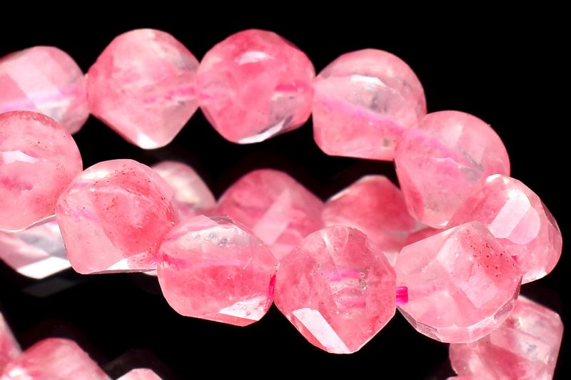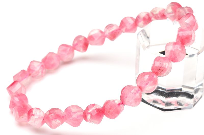 【1点物】希少◇花びらのよう ロードナイトシリカ 7mm 4面ツイスト×多面カット ブレスレット _U5132