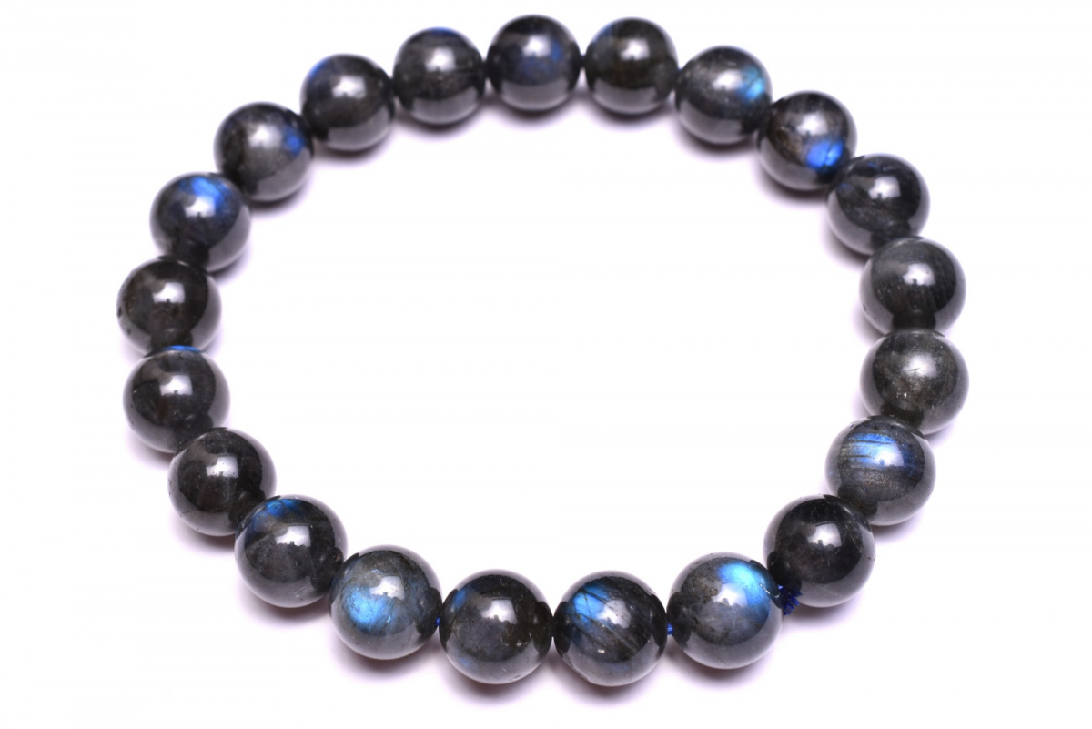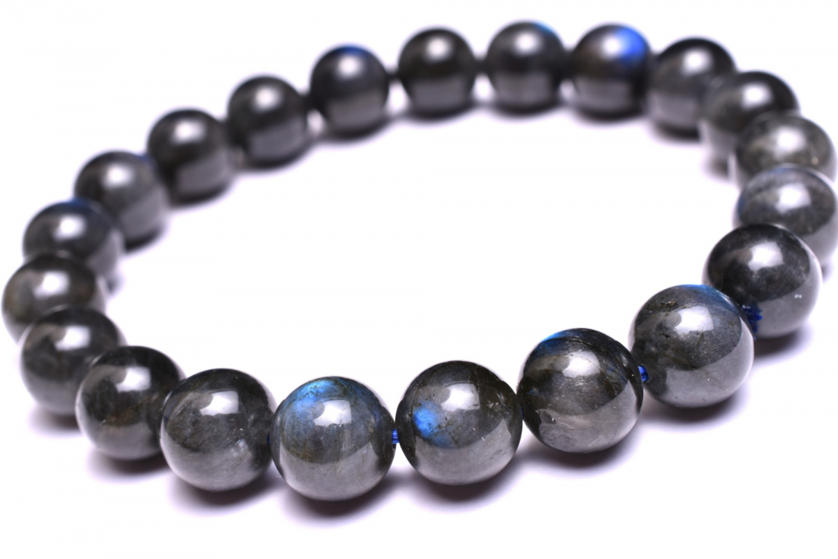 ブルーシラー! ブラックラブラドライト 9mm ブレスレット 1個売り _B1395-9