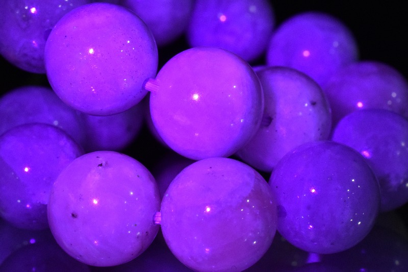 ハックマナイトは、ソーダライト(方ソーダ石)の変種で、紫外線で色が変わるファトクロミズムという不思議な特徴を持つパワーストーンです。