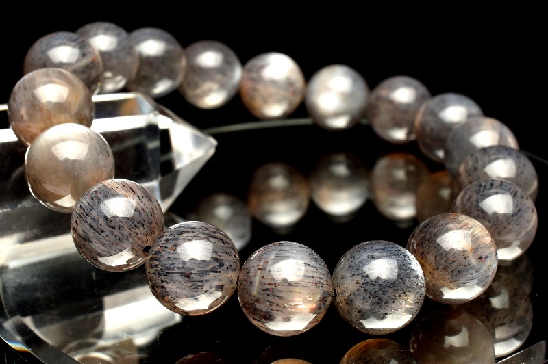 【1点物】シルバーシラー ブラックサンムーンストーン 11mm ブレスレット _M7738