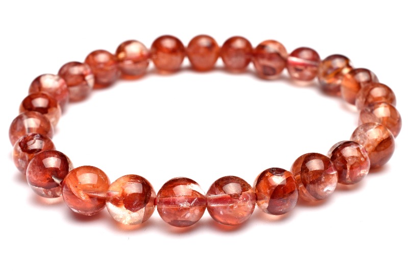 【1点物】高発色◇クリア ヘマタイトインクォーツ(赤鉄鉱入り水晶) 7mm ブレスレット _M7823