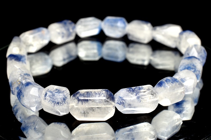 【1点物】希少形状 デュモルチェライトインクォーツ 9-13x6-8mm 原石ラフカット ブレスレット _M7831