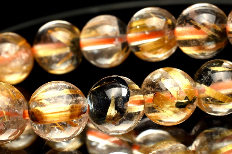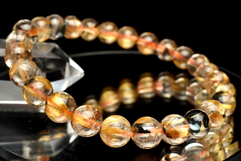 材質ヘマタイトインタイチンルチルクォーツ 7.5mm 産地:ブラジル