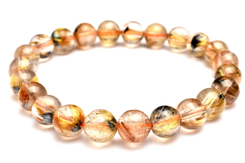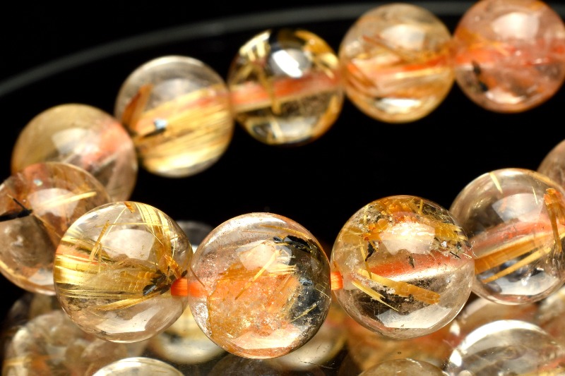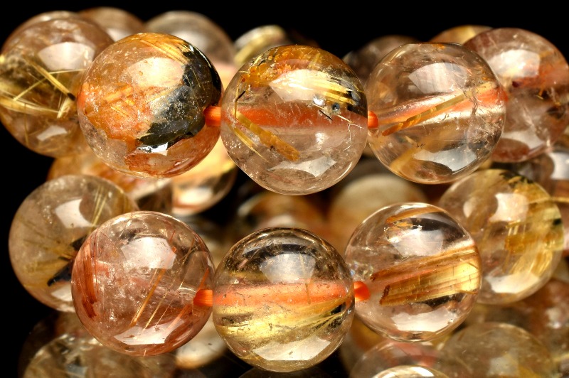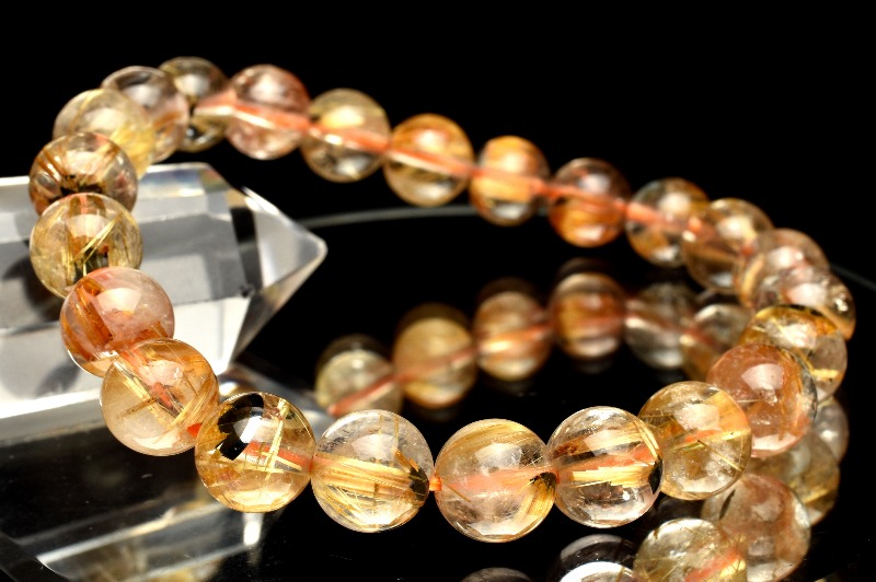 材質ヘマタイトインタイチンルチルクォーツ 8-8.5mm 産地:ブラジル