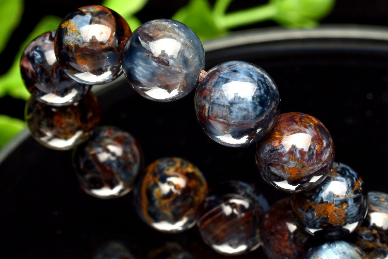 一般的にはタイガーアイ系の茶褐色が多いですが、ブルータイガーの青系もあり、茶と青の混じったものもあります。