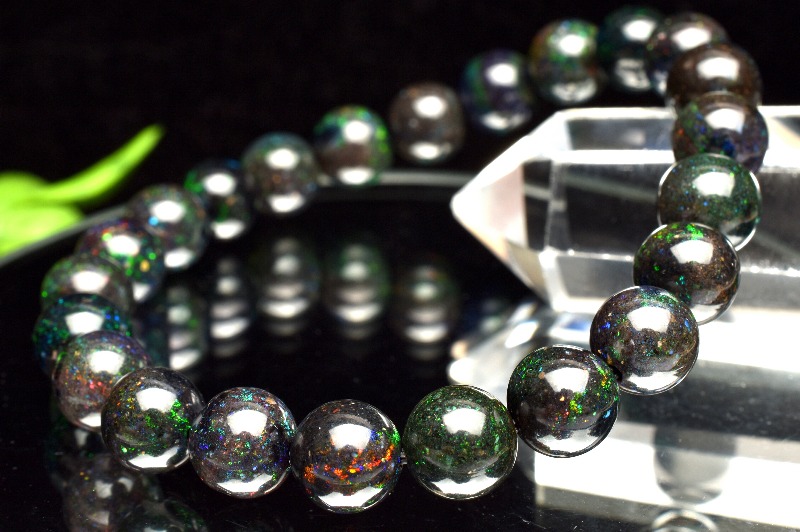 【1点物】高品質◇神秘的な虹色の輝き ブラックマトリックスオパール 8mm ブレスレット _M7971