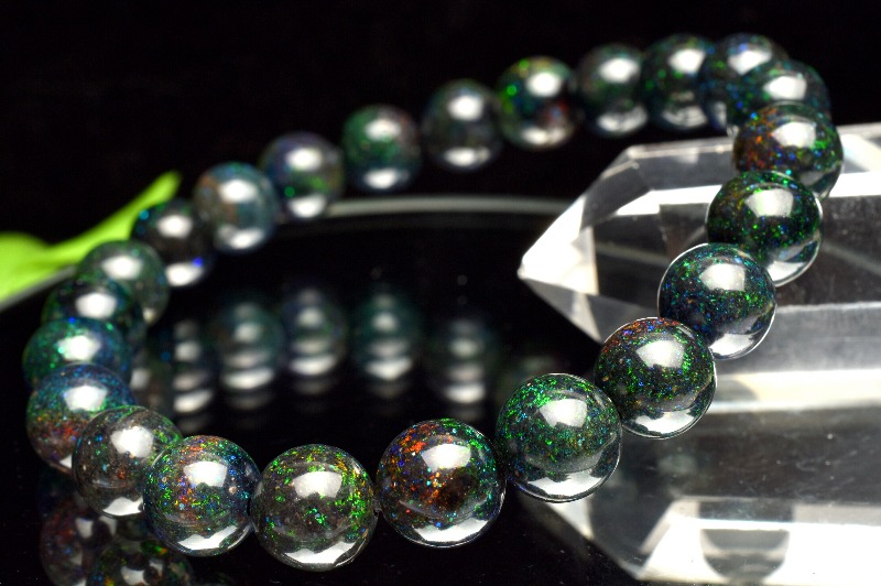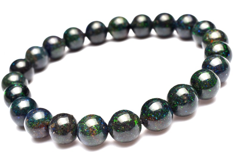 【1点物】高品質◇神秘的な虹色の輝き ブラックマトリックスオパール 8mm ブレスレット _M7976