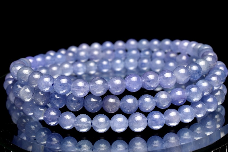 【1点物】透過性あり タンザナイト 5mm 3連タイプ ブレスレット _M8006