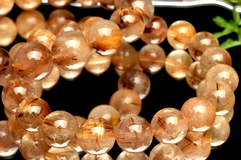 材質タイガータイチンルチルクォーツ 9.5mm 産地:ブラジル
