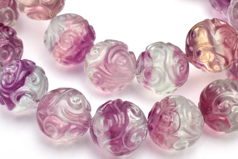 1つの石が複数の色を持つバイカラーのものもあり、「レインボーフローライト」と呼ばれます。
