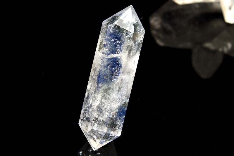 水晶の中でフワフワと青い華が咲いているような内包物が神秘的で美しいです。