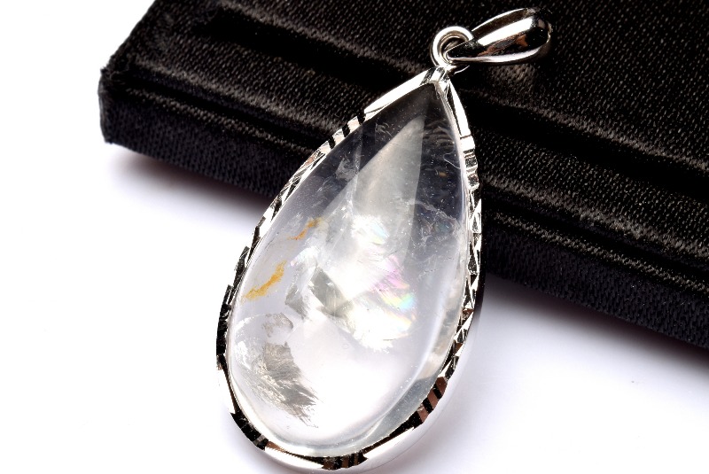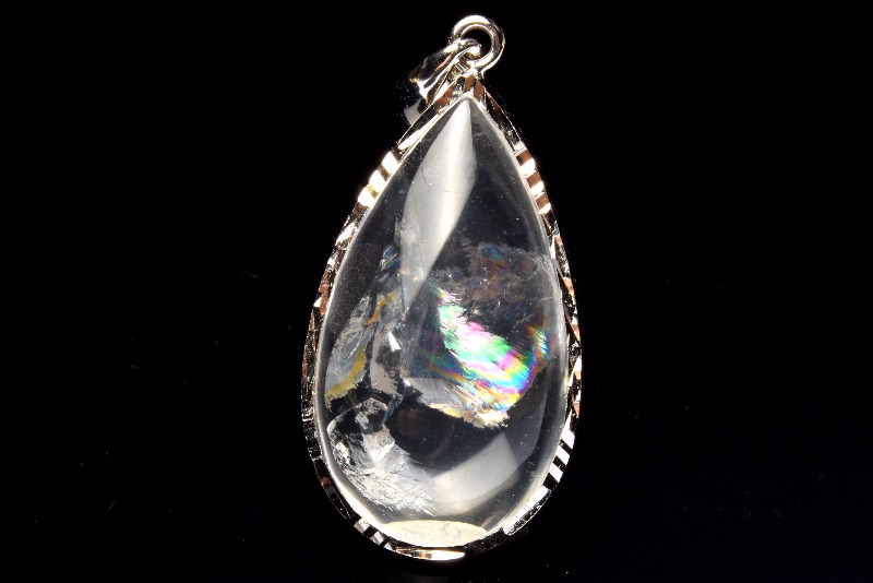 【1点物】Silver925◇レインボー虹入り アイリスクォーツ 25x14mm ドロップ ペンダントトップ _PC1813