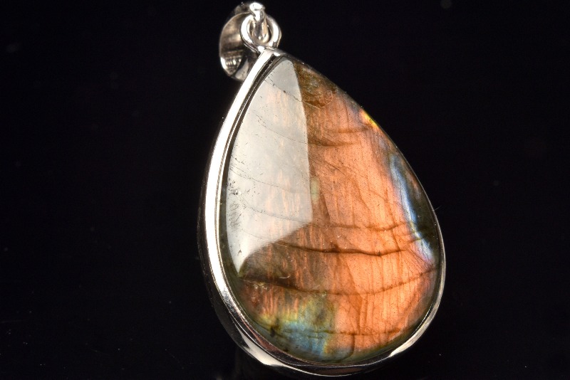 ラブラドライトの特色は、なんと言ってもその美しい閃光です。冷たそうでいて、非常に深みのある光は「ラブラドレッセンス(ラブラド光線)」と呼ばれます。