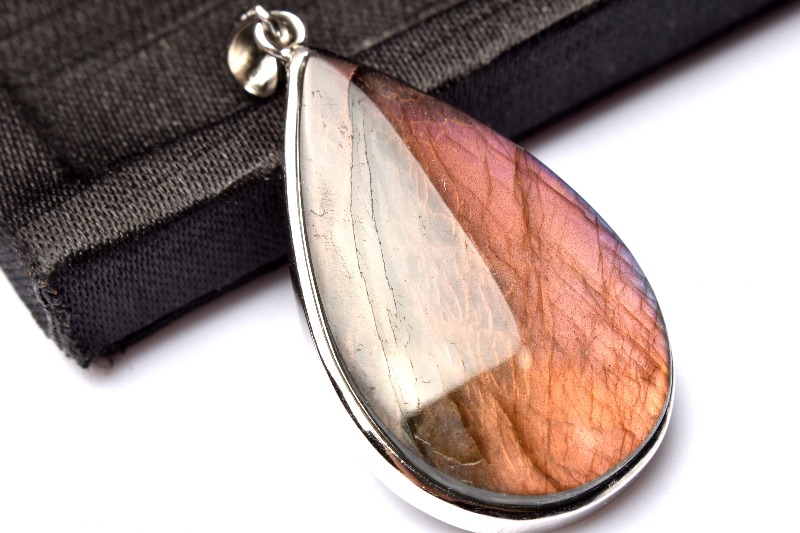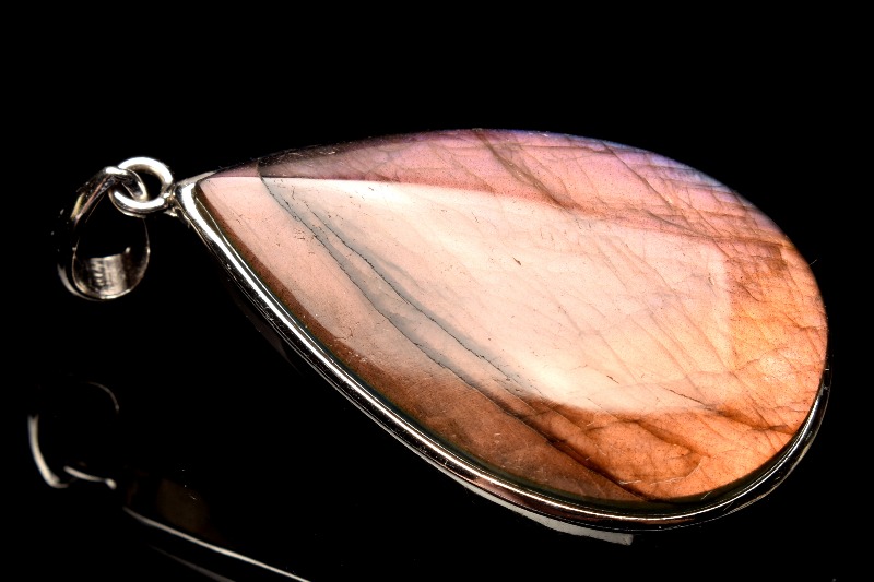 ラブラドライトの特色は、なんと言ってもその美しい閃光です。冷たそうでいて、非常に深みのある光は「ラブラドレッセンス(ラブラド光線)」と呼ばれます。