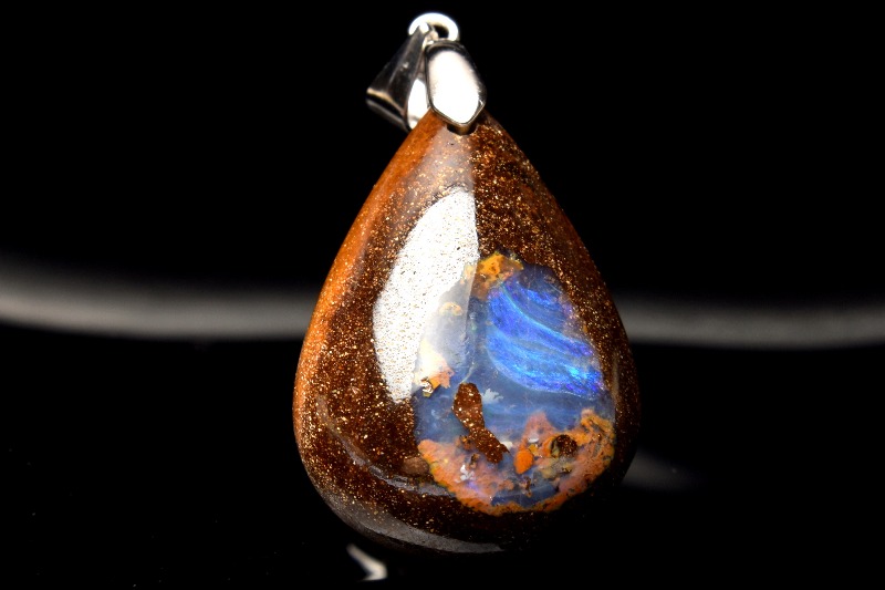また褐鉄鉱自体のマーブル模様も魅力で、是非、天然ボルダーオパールの魅力を感じていただきたい一品です。