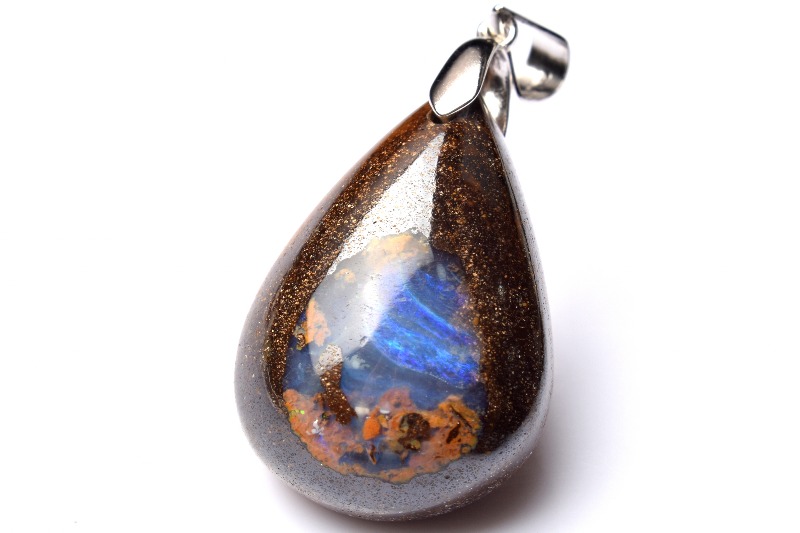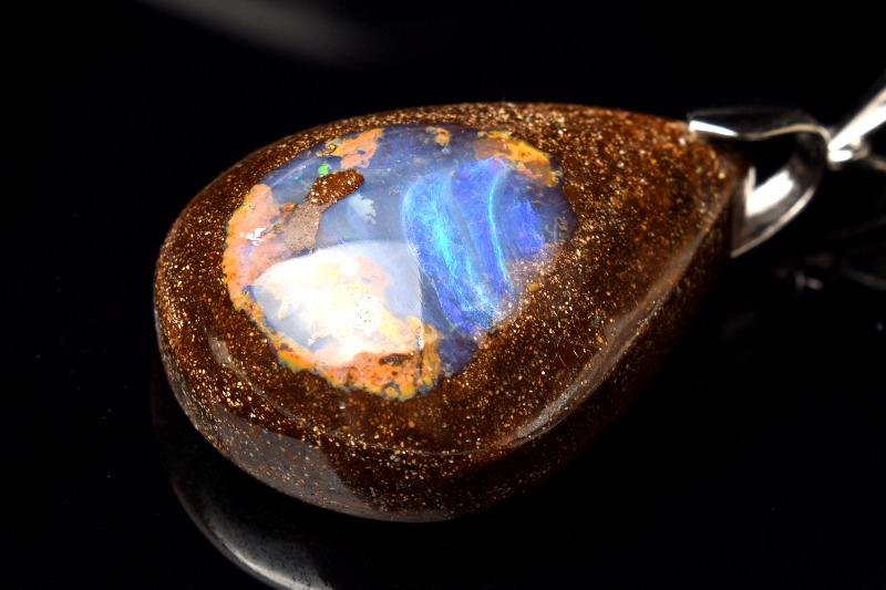 ボルダーオパールは茶色い褐鉄鉱(ライモナイト・リモナイト)の母岩の隙間で結晶化するオパールで、その大きく異なる色のコントラストが美しく、オパールの中でも人気の種類です。