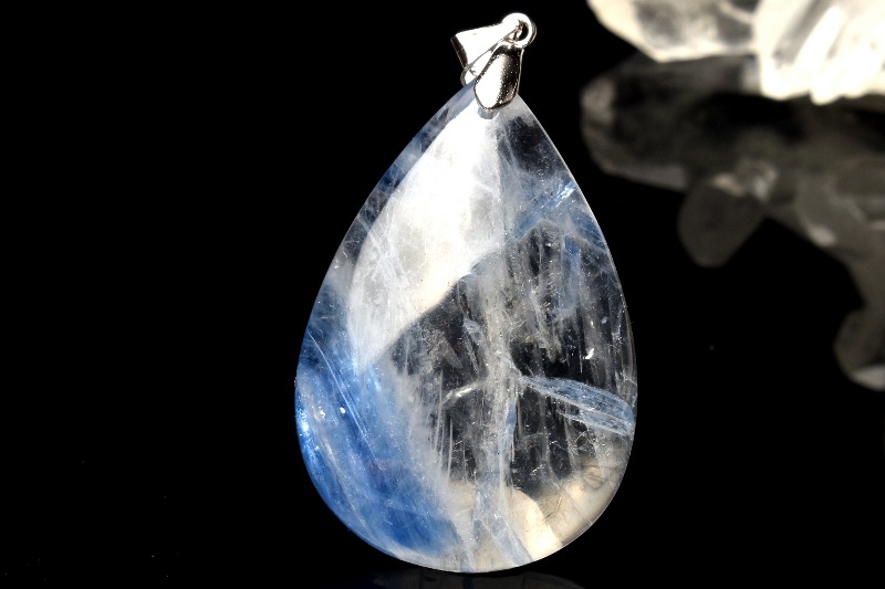 【1点物】Silver925◇天然無着色 カイヤナイトシリカ 35x24mm ドロップ ペンダントトップ _PC1872