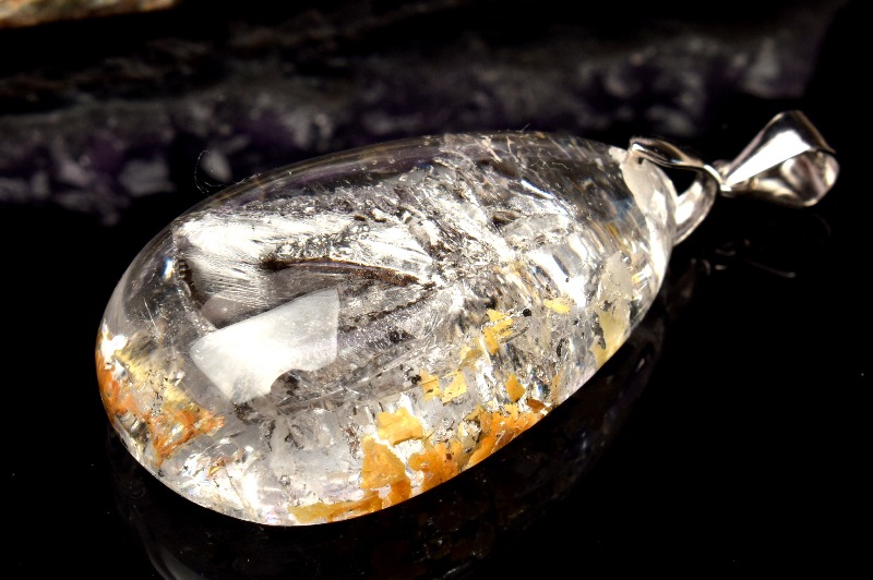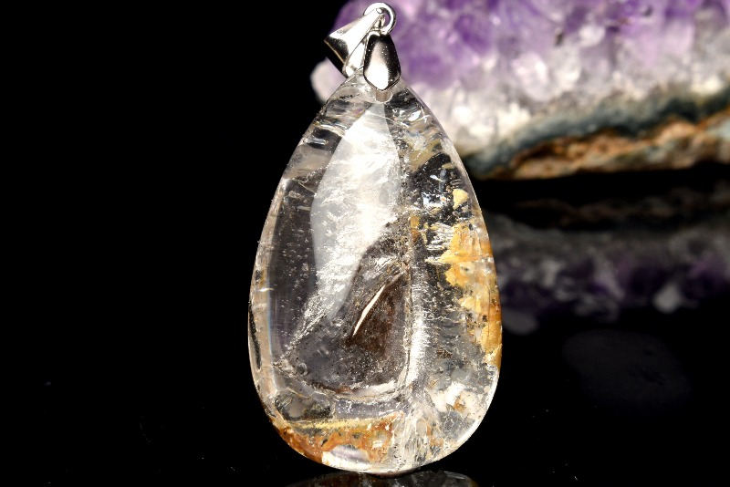 【1点物】Silver925◇ヒマラヤ産 エレスチャルクォーツ 32x20mm ドロップ ペンダントトップ _PC1884
